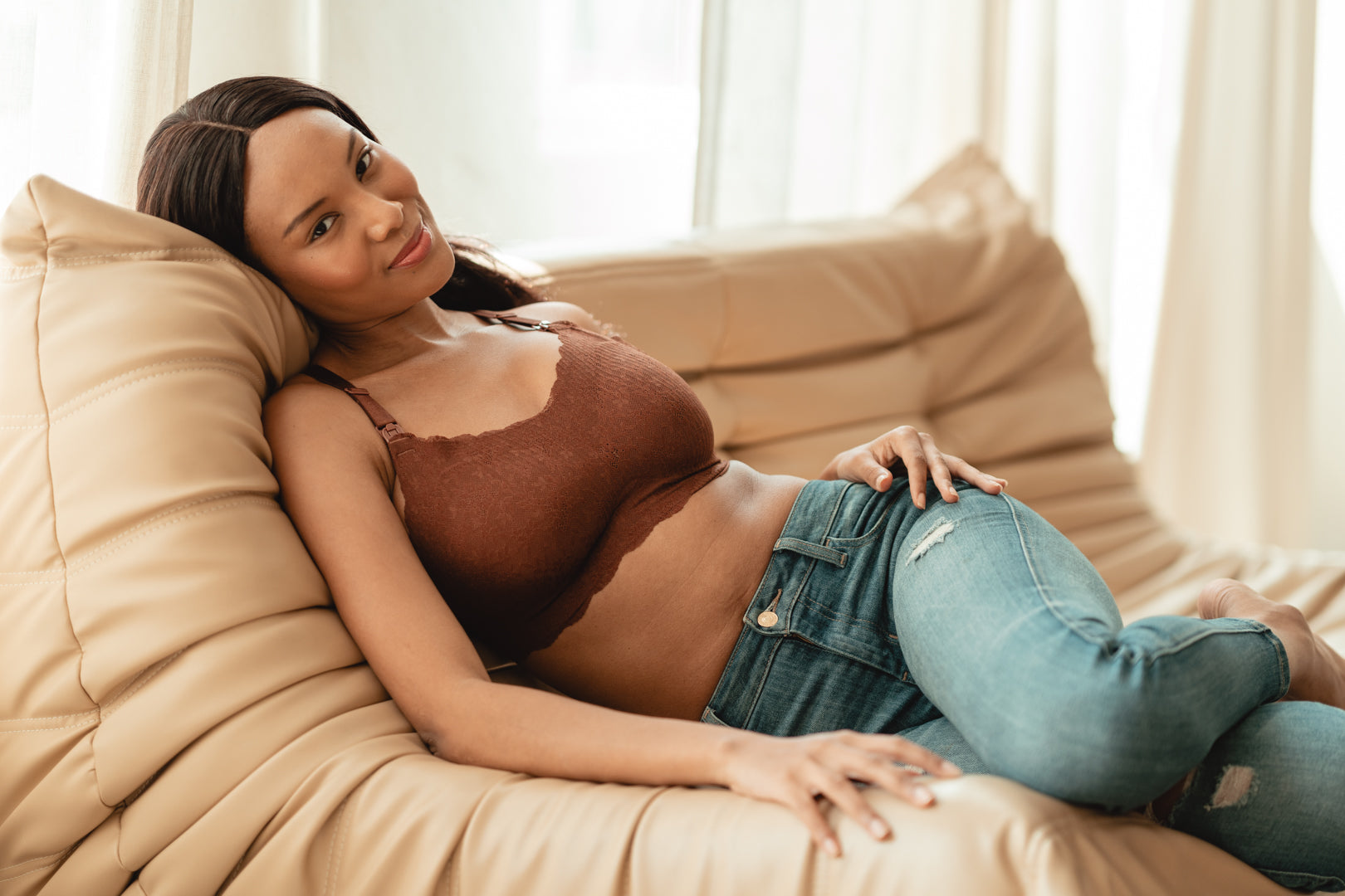 "I feel so comfortable and sexy. I love the feel of the fabric on my skin, it's so easy to feed my baby, and my husband definitely approves!"