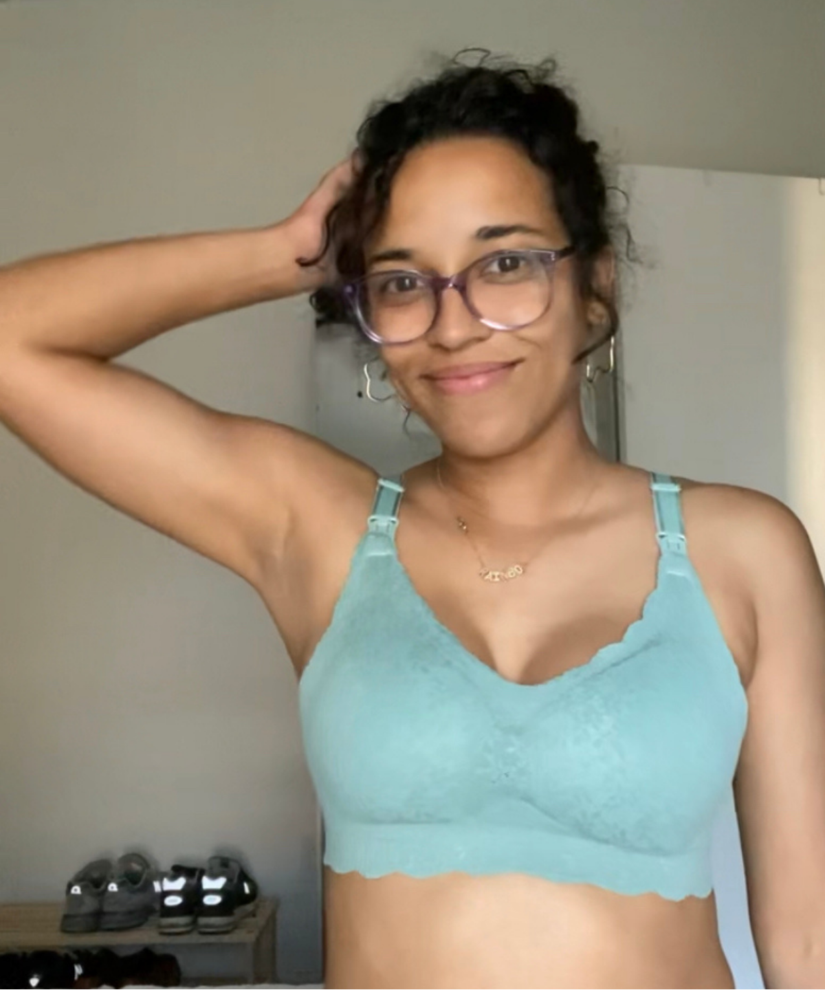 "I lived in these bras during pregnancy and now during the postpartum phase, I continue to live in them! I tested out one bra and wound up purchasing them in every color. Not only are they super stretchy and soft, they are also beautiful. In the midst of the chaos of motherhood and breastfeeding, it’s nice to have a bra that makes you feel good about yourself and that is also functional for all stages of motherhood. I find these bras very comfortable to wear all day, they are definitely my most used bras. I recommend following their size guide, I would normally be a medium but I sized up to a large. I found this size to fit me well and to be comfortable. Overall I feel these bras are amazingly comfortable