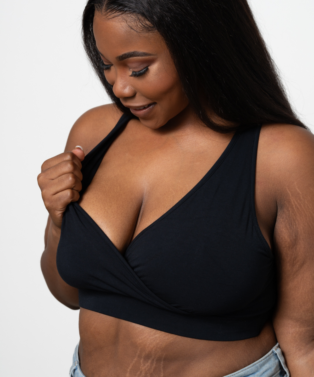 "I feel so comfortable and sexy. I love the feel of the fabric on my skin, it's so easy to feed my baby, and my husband definitely approves!"